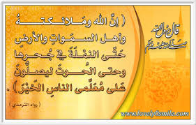 ويكفيك فخرا أن تكون ممّن تستغفر له الملائكة حتى الحيتان في البحر كما قال رسول الله صلى الله عليه وسلم: " إن الله وملائكته يستغفرون لمعلم الناس الخير ، حتى الحيتان في البحر " ،.